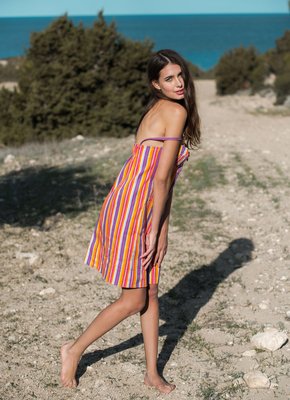 Описание: Эротично стянув перед камерой свое короткое яркое платьице, стройная загорелая брюнетка с маленькими сиськами и нежными коричневыми сосочками возбуждающе позирует голышом прямо на земле и, чувственно извиваясь всем телом, с разных ракурсов засвечивает свою аккуратную бритую письку.