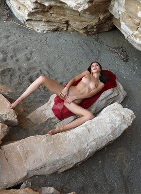 Описание: Без стеснения скинув с себя легкий платок, развратная голая худышка увлеченно лазит по большим скалам и открыто показывает на камеру свою бритую сочную киску. Чувственно изгибаясь в разных позах, бесстыжая красавица охотно демонстрирует нам свое молодое нежное тело с миниатюрными титечками и аккуратной упругой попкой.