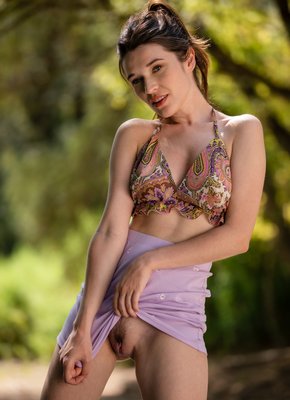 Описание: Страстно извиваясь перед камерой на фоне природы и постепенно стягивая с себя одежду, сексуальная тётка с голыми упругими сиськами кокетливо приподняла свою короткую юбку без трусов возбуждающе показала нам свой волосатый темный лобок и бритую маленькую пиздёнку между ног.