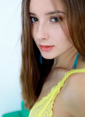 Описание: Очаровательная милая девушка в желтом нижнем белье флиртует с фотографом, который с ней сегодня работает. Соблазнительная брюнетка игриво разделась до гола, а затем открыто села на диван, демонстрируя на камеру свои маленькие сиськи и нежную гладкую киску.