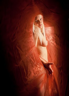 Описание: Расположившись под яркой тканью, молодая и полностью голая блондинка устраивает эротичную ню фото сессию, чередуя разные позиции и ощущая удовольствие. В процессе сексуальная девушка с натуральными сиськами показывала гладенькую бритую письку с лобком.
