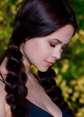 Описание: Найдя в лесу яркую цветущую поляну, молоденькая брюнетка снимает на камеру свое легкое платье без нижнего белья и позирует голой на природе. Сексуальная девица свободно на показ выставляет свои большие упругие титьки, а затем встает на траве раком и тычется в камеру свое аппетитной попкой и бритой голой промежностью.