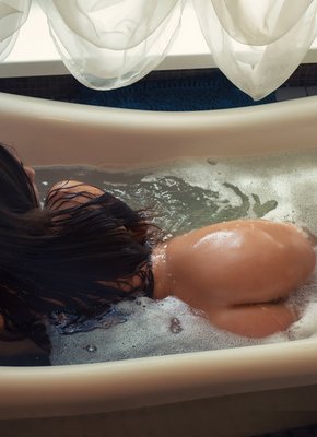 Описание: Грациозно позируя в облегающем платье, сексуальная сучка с огромными сиськами и пышной жопой забирается в ванную и начинает эротично стягивать с себя все лишнее. Поддаваясь нахлынувшему на неё возбуждению, мокрая девушка нежно поглаживает руками натуральные дойки и гладко выбритую письку.