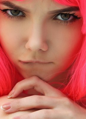 Голая девка с розовыми волосами